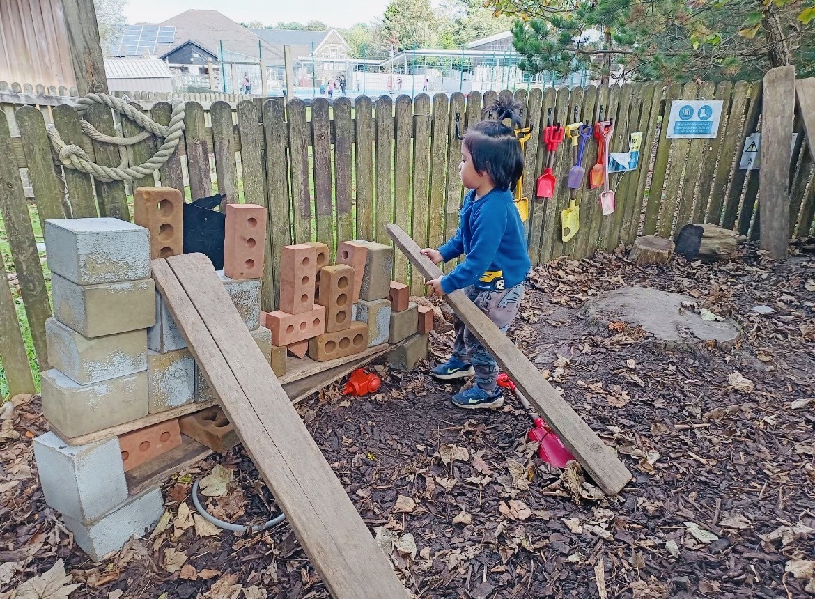 Our children can go into the outdoor environment daily, in all weathers, through a free-flow approach. The only times the outdoor environment is unavailable is during adult-led focus activities, and if the environment or the weather is unsafe for our children. Outdoor provision is planned and organised in a similar way to indoor provision; using a continuous and enhanced provision approach.